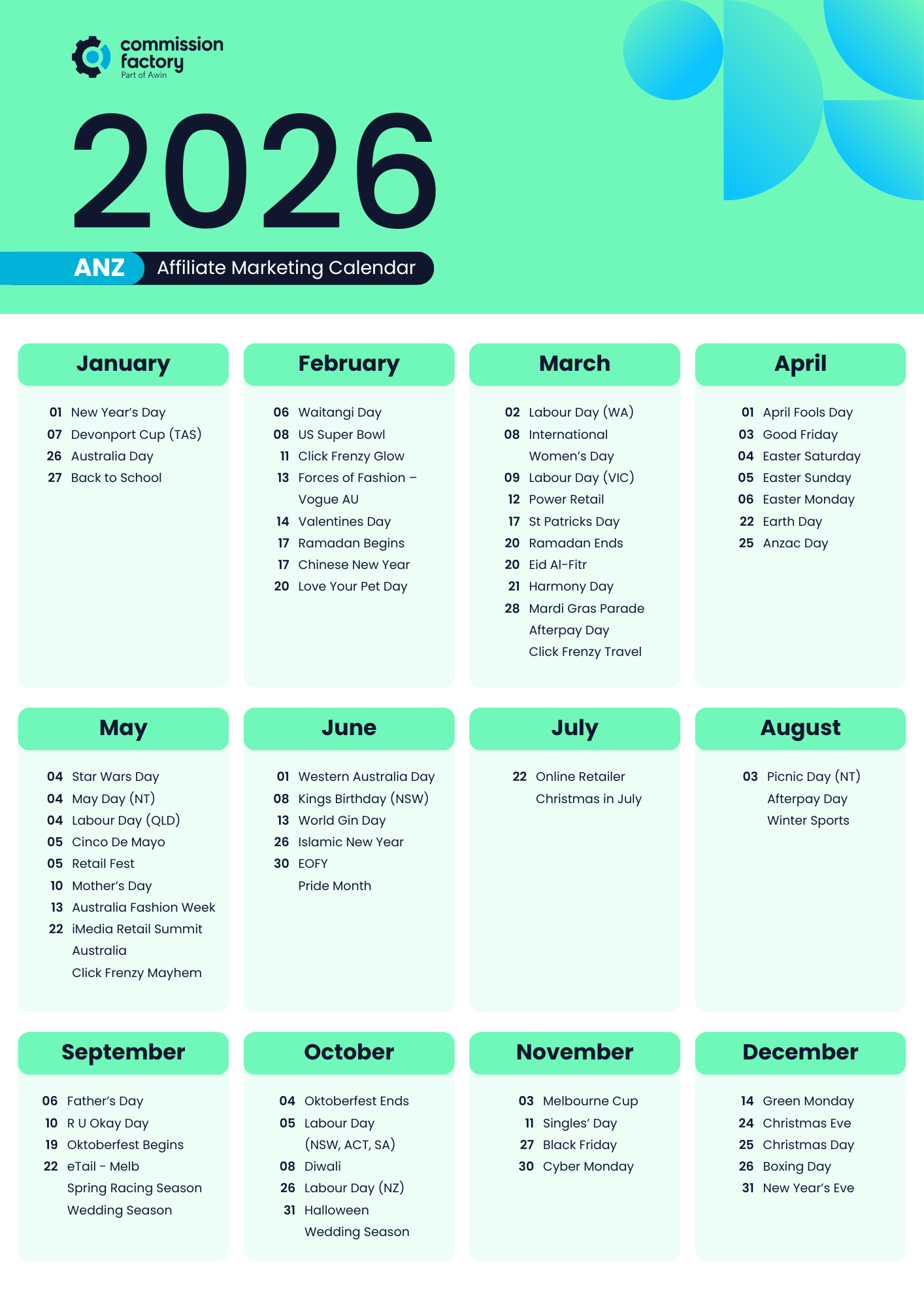 We've done the hard work for you and compiled our affiliate marketing calendar for AU, NZ and SEA, so all key 2026 dates are ready at your fingertips.